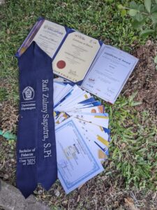 Semarang, 17 November 2025 – Universitas Diponegoro (UNDIP) kembali mencetak lulusan berprestasi dari Fakultas Perikanan dan Ilmu Kelautan (FPIK). Rafi Zulmy Saputra, seorang mahasiswa dari Program Studi S1 Perikanan Tangkap, berhasil menyelesaikan studinya dalam kurun waktu yang sangat singkat, yakni 3 tahun 1 bulan dan 17 hari.